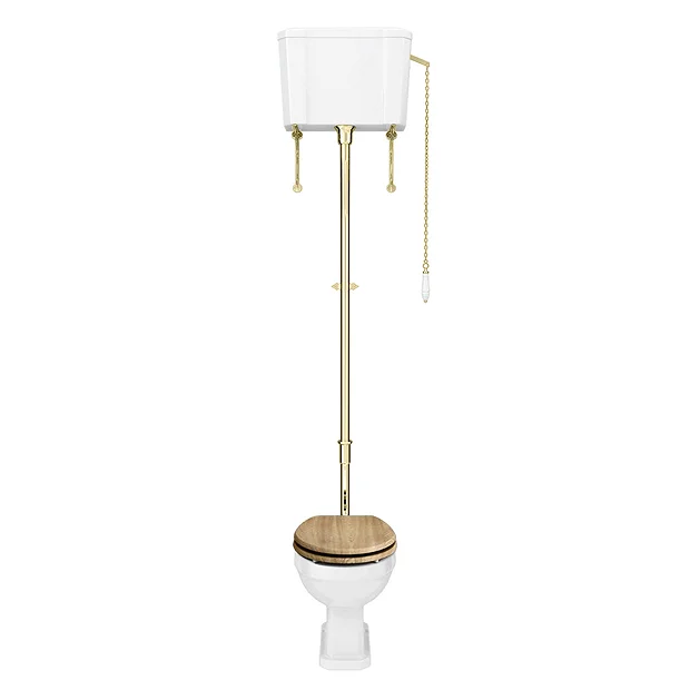 Carlton Traditional Brushed Brass High Level Toilet with Soft Close Wooden MDF Seat – Various Colour Options